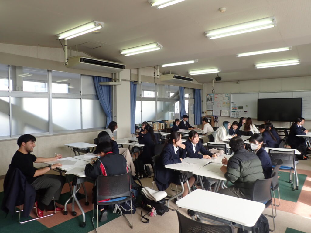研修では、自己紹介や日常会話などを中心に英語でのやり取りを行いました。生徒たちは間違えることを恐れずに積極的に会話に取り組み、楽しそうに英語で話す姿が多く見られ、実践的な英語力を身に付ける貴重な機会となりました。