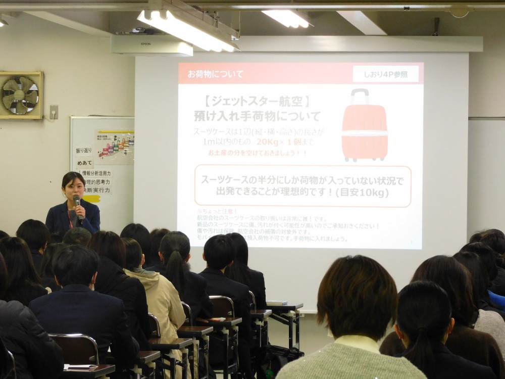 研修を担当する業者の方から、語学研修の概要やホームステイでの生活、持ち物や安全面に関する注意事項などについて説明がありました。