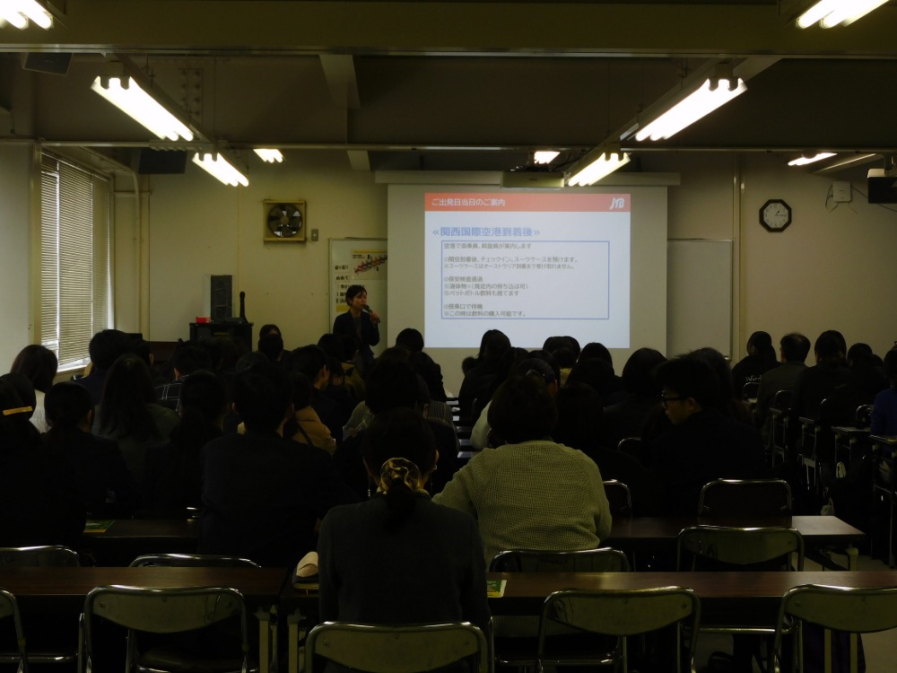 2月20日(金)に、来月実施するオーストラリア研修に向けた事前説明会を行いました。研修に参加する生徒と保護者を対象に研修内容や現地での生活について確認しました。