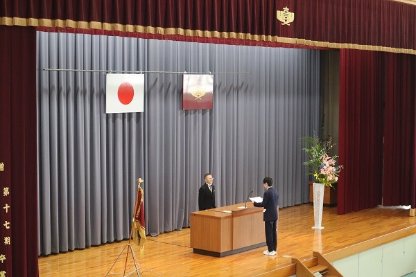 式典では、校長からの式辞と新入生代表による宣誓が行われ、厳かな中にも温かさの感じられる雰囲気で執り行われました。新入生たちは真剣な表情で式に臨み、高校生活の第一歩を踏み出す意欲に満ちた様子が印象的でした。
