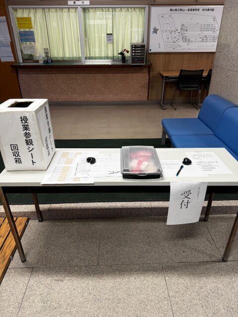 受付では授業参観シートの回収や来校者の案内を行い、保護者や地域の方、大学関係者、他校の教員など、多くの方にご来校いただいています。
