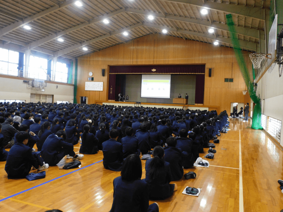 体育館に全校生徒が集まり、各候補者による立会演説会が行われました。