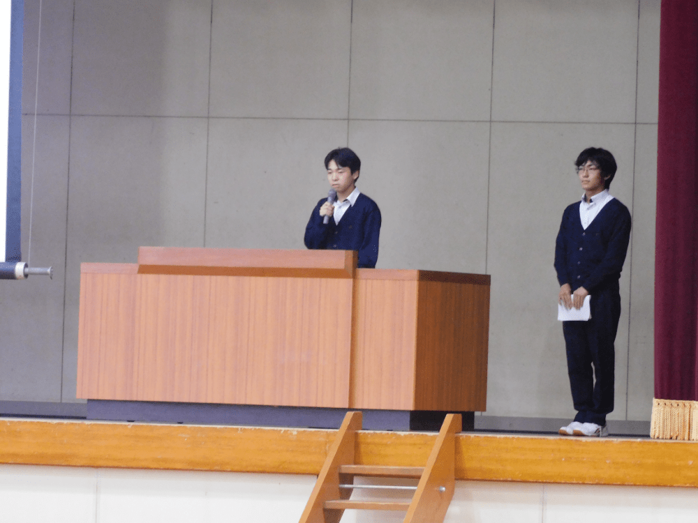 まずは立候補者応援演説が行われ、その後に立候補者が応援演説を行いました。それぞれが学校をより良くするためのアイデアや、自分が大切にしている思いをしっかりと語っていて、聞いているこちらも自然と引き込まれました。今回の選挙を通して、「学校を良くしたい」という気持ちを感じる1日になったと思います。