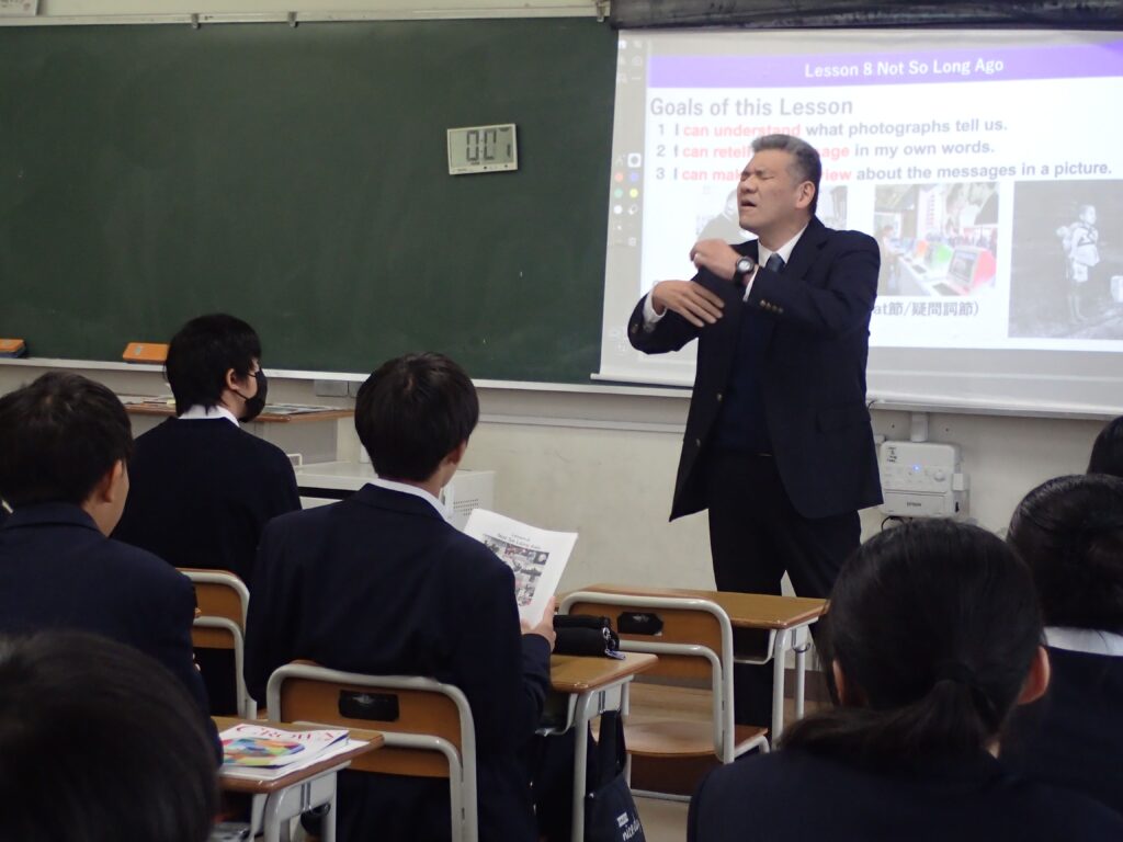 11月5日、1年生の英語コミュニケーションⅠの授業では、教科書CROWN Lesson 8 Not So Long Ago を題材に、英語の「読解力」と「思考力」の両方を育てる探究的な学びが行われました。