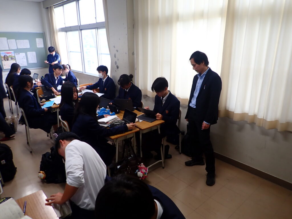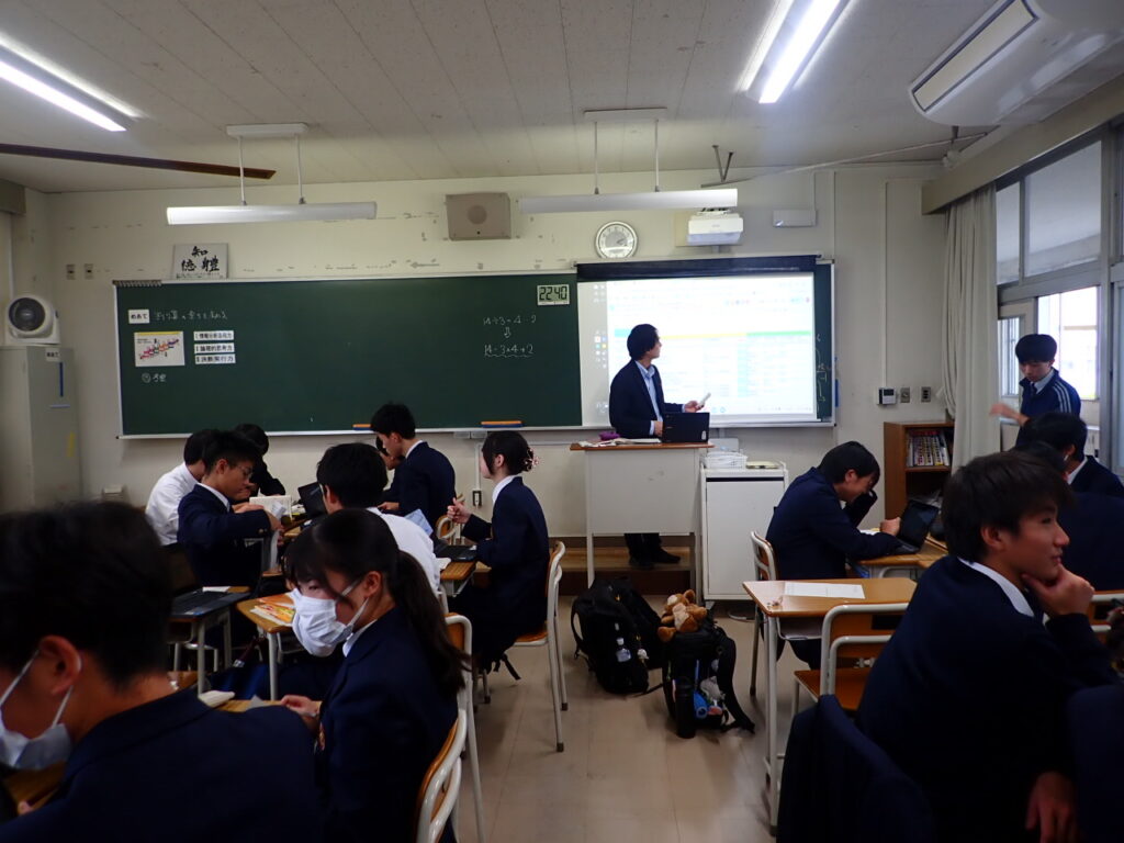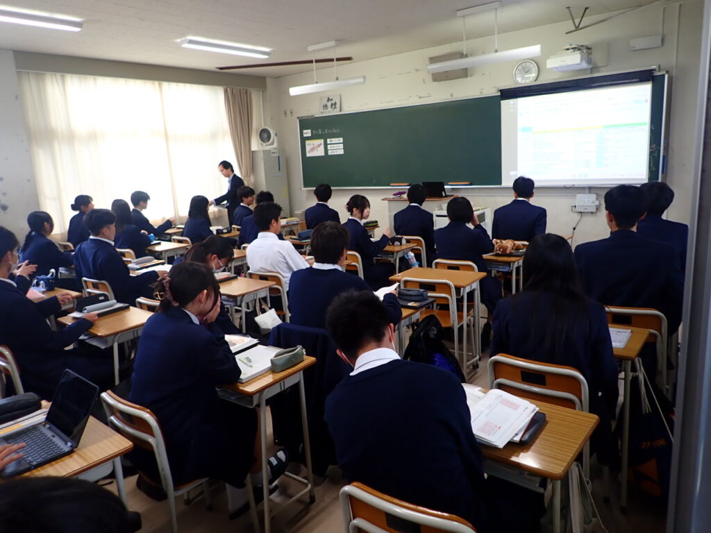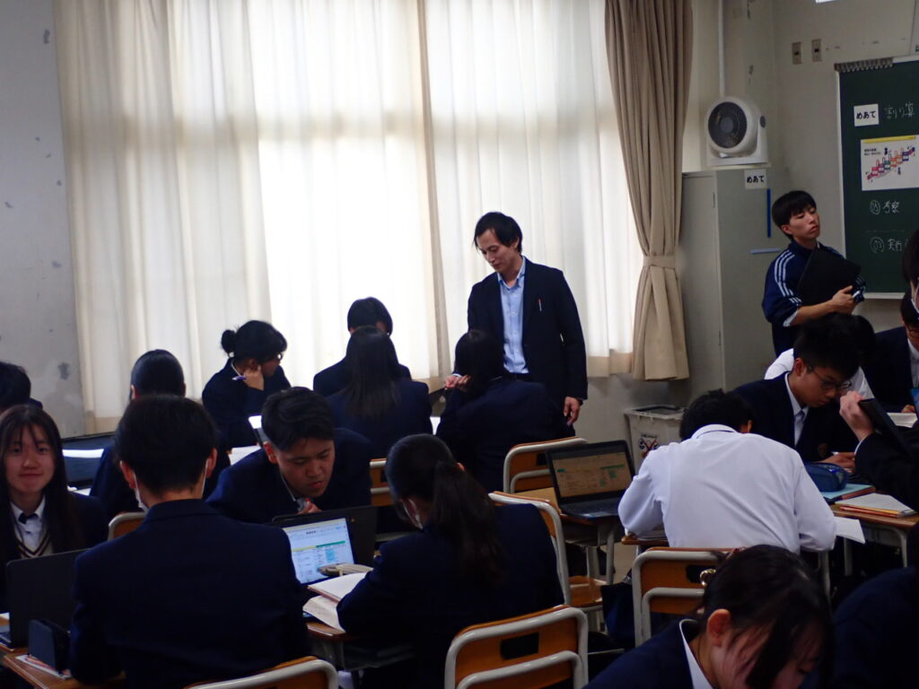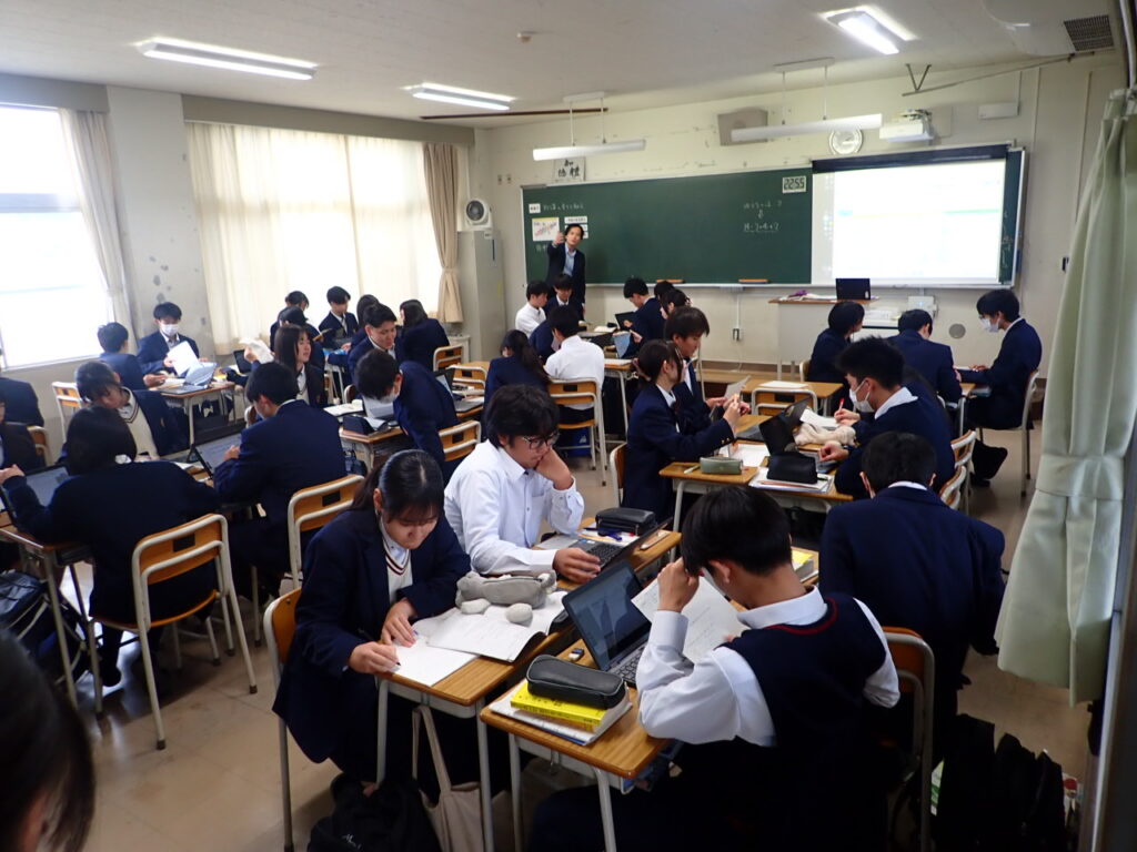 この日の授業は、岡山一宮高校が進める「探究チャレンジ」活動の一環として、自分で課題を設定し、数学的に考え抜く力を育てることを目的としています。生徒たちは「自分で課題を立て、数学で探る」という、いちのみや流の学びに挑戦しました。