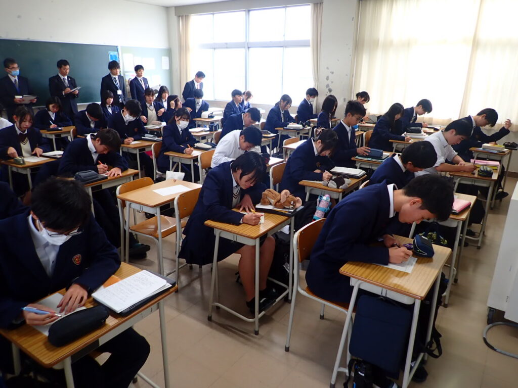 授業の導入では、前回までの内容を確認する復習テストから始まりました。