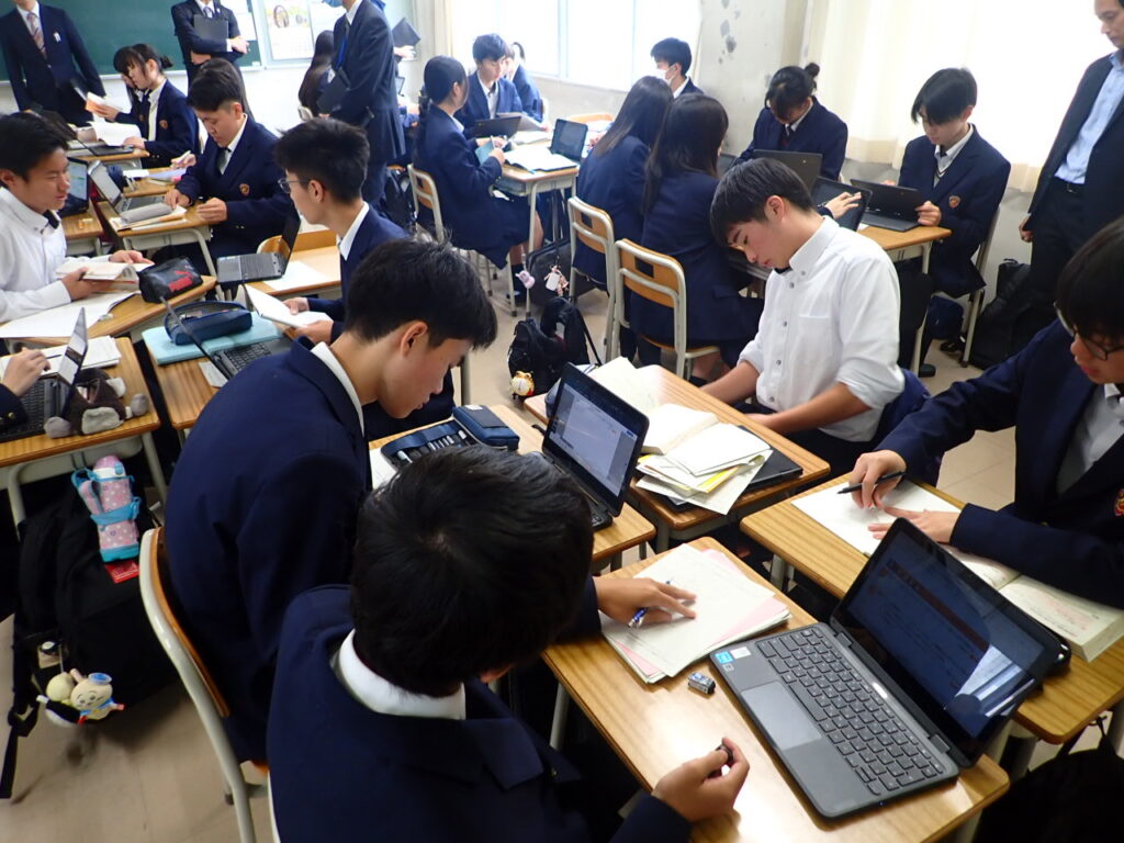 生徒たちはノートやスプレッドシートを使いながら、