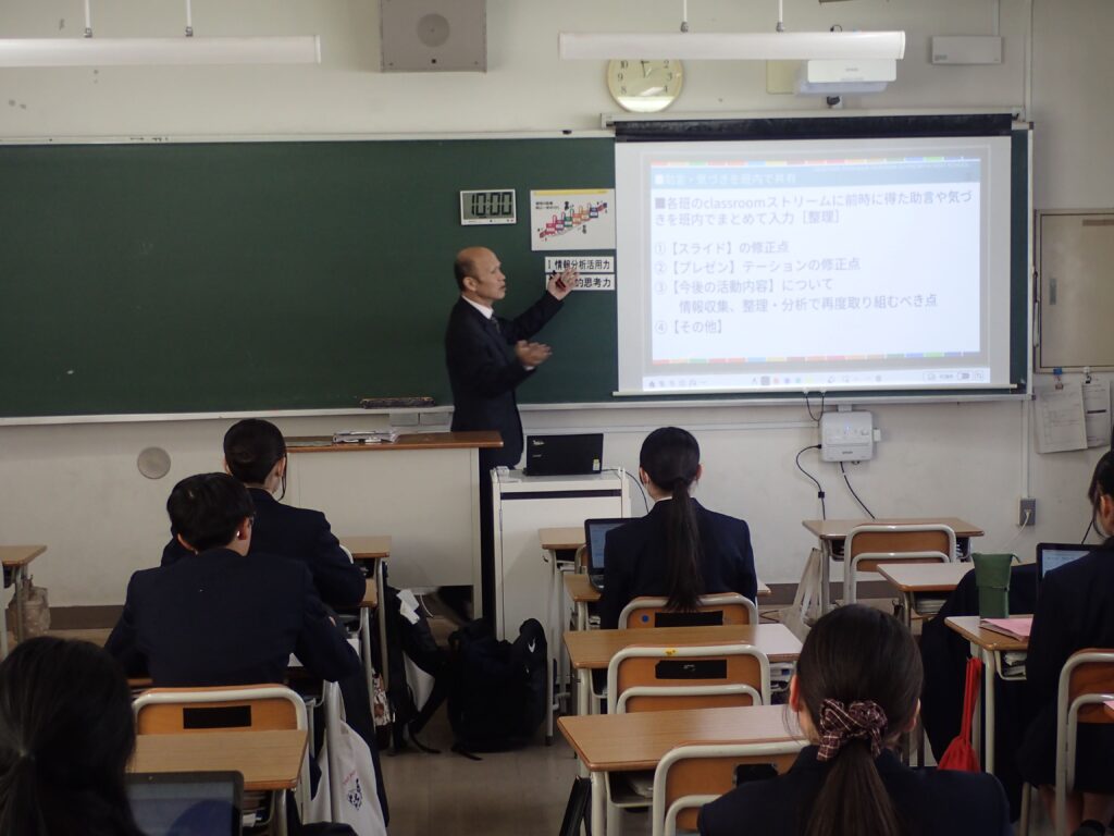 医療系を志望する生徒たちは、10月29日の「分野別発表会」で専門家(山形先生)からいただいたアドバイスをもとに、自分たちの研究をどのように改善するかを考え、再構成する作業に取り組みました。