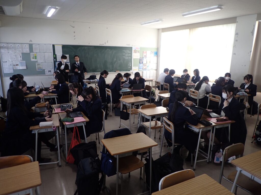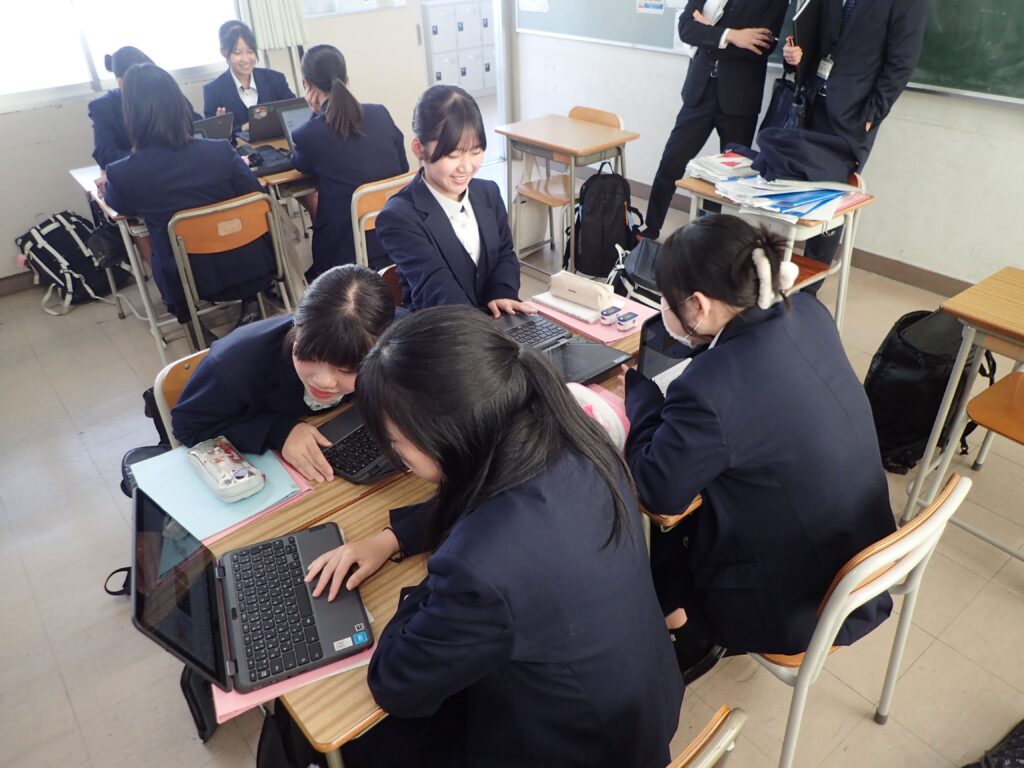 生徒たちは、先日の講評でメモした内容をClassroomに入力しながら、