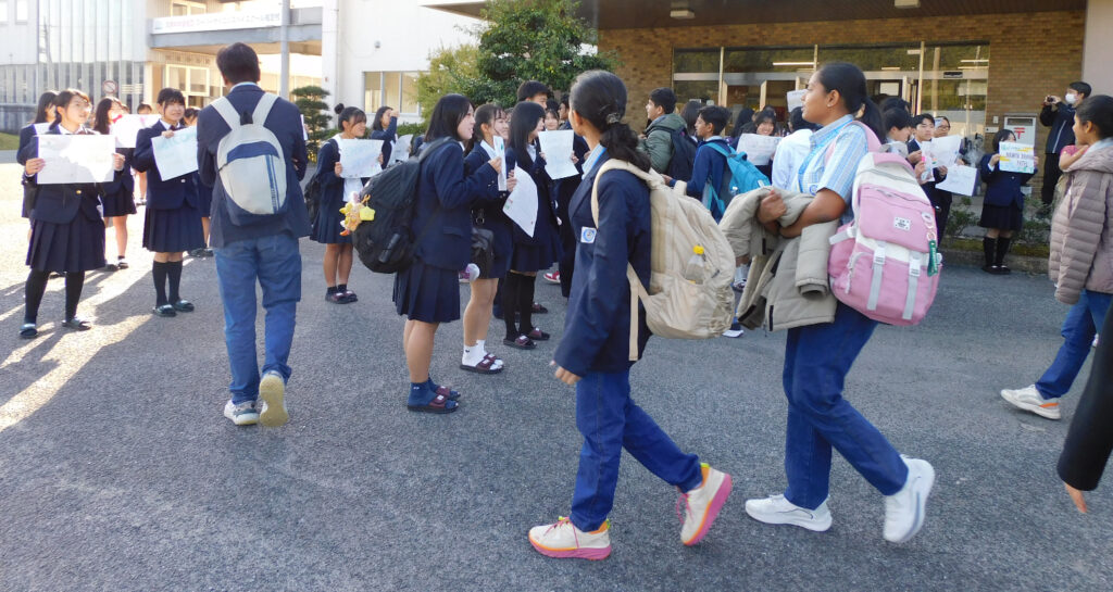 最後に閉会式が行われ、互いの健闘を称え合った後、本校生徒がバスまで見送りをしました。別れを惜しむ姿が多く見られ、充実した一日となりました。