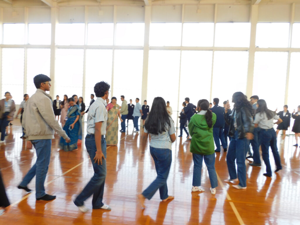 発表後はアリーナに場所を移し、インドの踊りを教わりながら全員でダンスを楽しむ時間も設けられました。音楽に合わせて笑顔があふれ、国境を越えた一体感に包まれました。