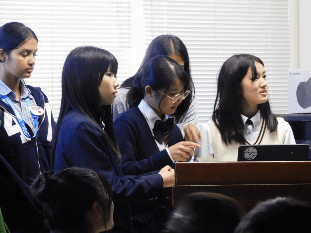 両校の生徒たちは真剣に耳を傾け、相手の意見に英語で応じる姿が見られました。