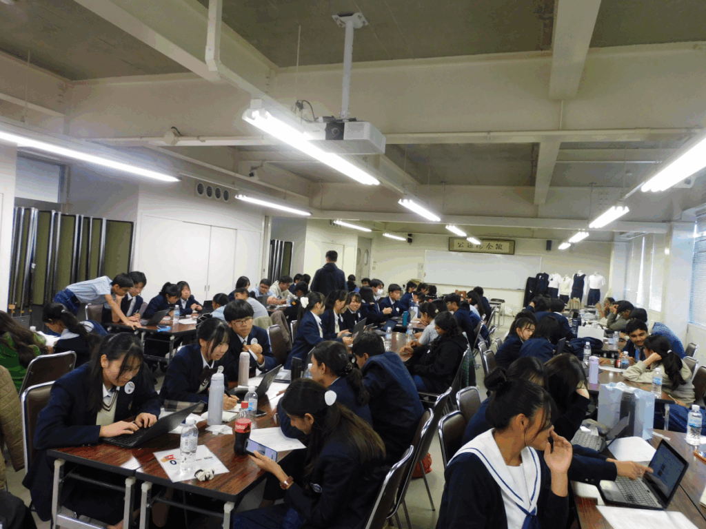生徒たちは限られた時間の中で意見を出し合い、資料をまとめ、役割分担を決めて発表の準備を進めました。