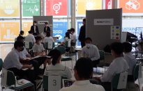 8月3日 に岡山コンベンションセンターで開催された小学生対象ワークショップに参加した後、翌日4日に同会場で開催された高校生交流会にも参加しました。この日は午前中は企業のSDGsの取組について学び、午後は高校生が各校の取組の発表をしました。その後、企業の方々から私たちの取組についてご意見やアドバイスをいただきました。岡山一宮高校からは2チームが発表しました。