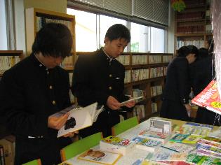 イベントの一つとして、11月24日放課後、図書館にて古本市を開催しました。図書館には大勢の生徒が詰めかけ、昨年度分の雑誌や、勉学関係・進路関係のものから小説まで、計200冊ほどが一高生の手に渡りました。