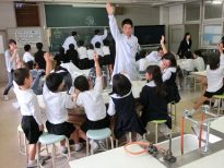 10月20日(金)、本校1年生が近隣の小学校4校で授業支援をおこないました。国語、算数、音楽、学活などの授業に加わり、小学生と一緒に勉強をしました。九九を聞いたり、一緒にバレーボールをしたり、段ボールで物語『スイミー』を再現したりするなど、様々な形で小学生と触れ合うことができました。小学生はこの日をとても楽しみにしていたようでした。授業2時間分という短い時間でしたが、充実した時間にすることができました。今回の活動をきっかけに、生徒達が「地域の異年齢層と交流し、主体的に人間関係を構築し、コミュニケーション能力を向上させ、社会(地域)貢献の精神を養う」ことの大切さに気づくことができたら、と思います。